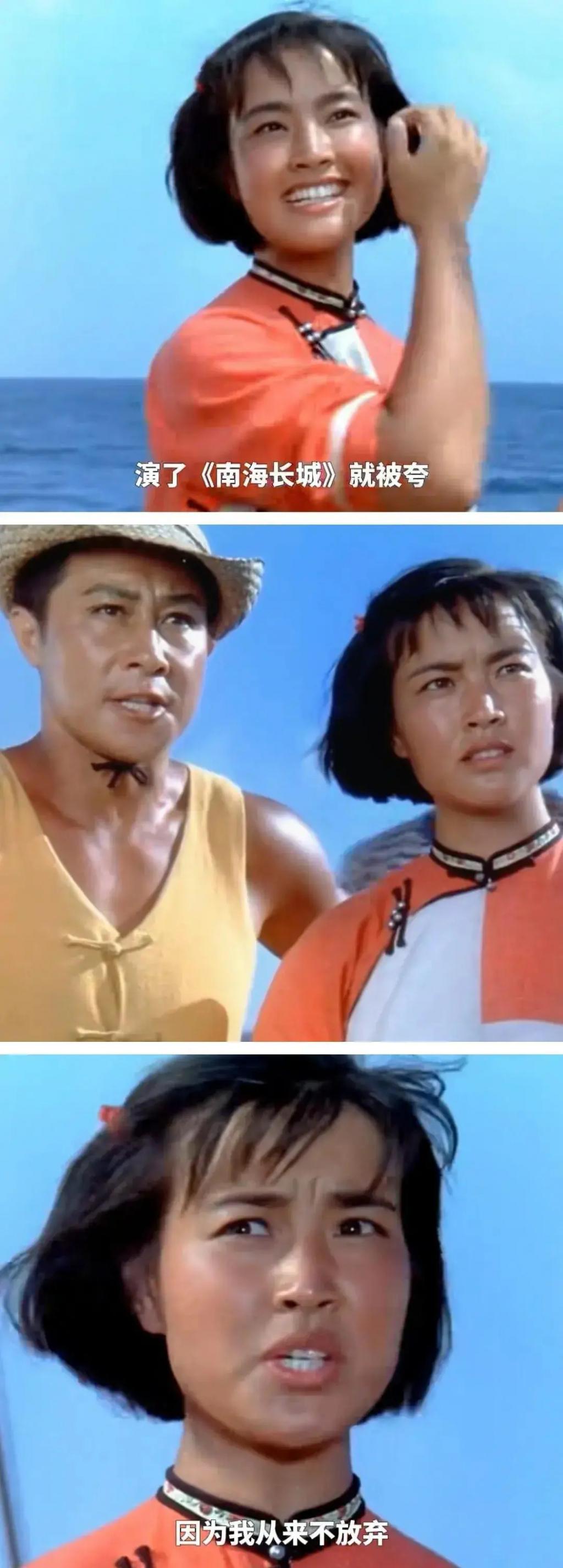 刘晓庆说自己在娱乐圈的长相很普通,但就是上镜,25 岁那一年她演了《南海长城》这部作品中的她本色出演,皮肤黝黑,脸有些粗糙,却看起来很有韧劲。
