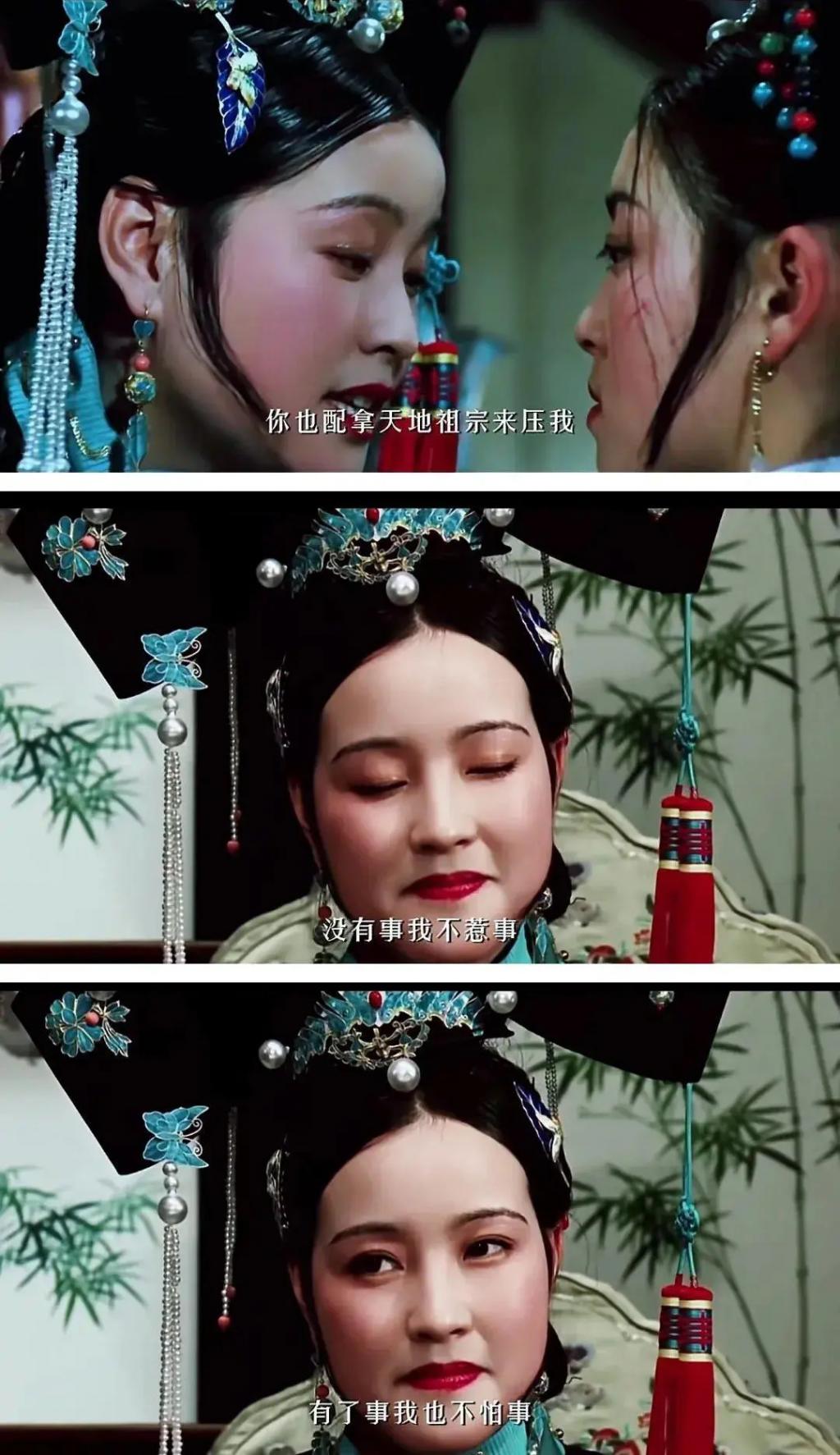 她演的慈禧凌厉又有威严,她的脸有肉感又呈现出丰腴的美感,她不算艳美,但她的那双眼睛会说话,很灵动,她的戏全靠她的一双眼睛。