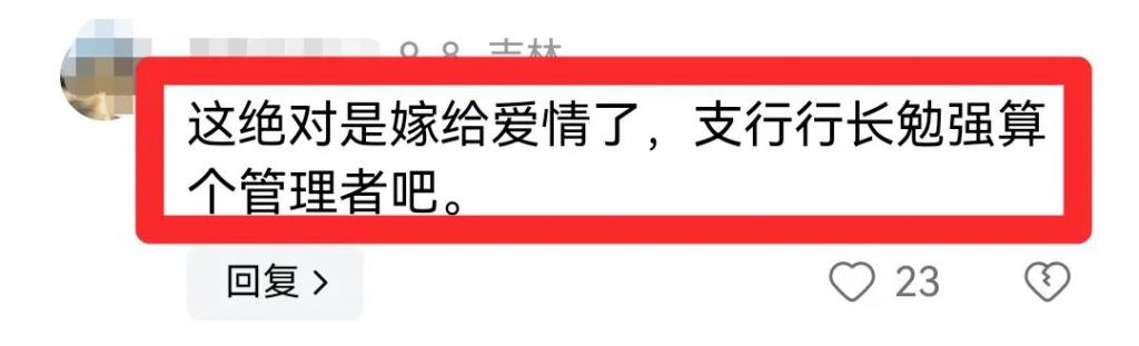 更有网友认为," 这绝对是嫁给爱情了,支行行长勉强算个管理者吧 "。