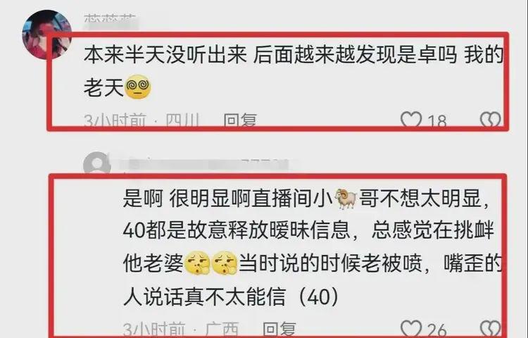 更有网友说,40 此前经常公开释放暗示一些情愫,给大家的感觉就是在挑衅人家的正宫原配,当时网友们都以为是直播效果,这下全都对上了。