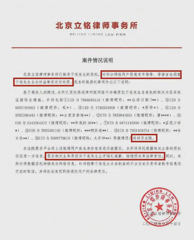 不过他发布了一份声明,否认了包养和做鸭,将起诉 10 位对其侮辱诽谤的网友。