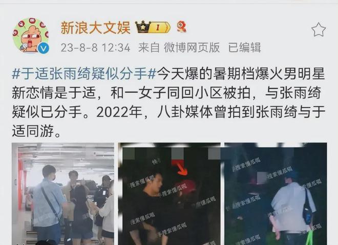 而在 2023 年 8 月,有狗仔拍到于适和一名年轻女子在一起,彼时大家都认为他们已经分手了,随着张雨绮自曝,大家没想到他们之间的分手还有这段故事。