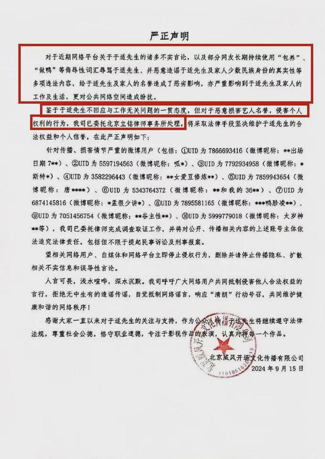 被曝同时交往多位富婆,于适否认包养和做鸭,将起诉10名网友
