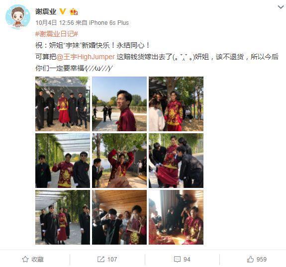 短短几句调侃的话也看得出来谢震业是真心希望两人爱情美满、婚姻长久,同为田径选手,谢震业看到自己的好兄弟大婚,心中肯定非常开心了!