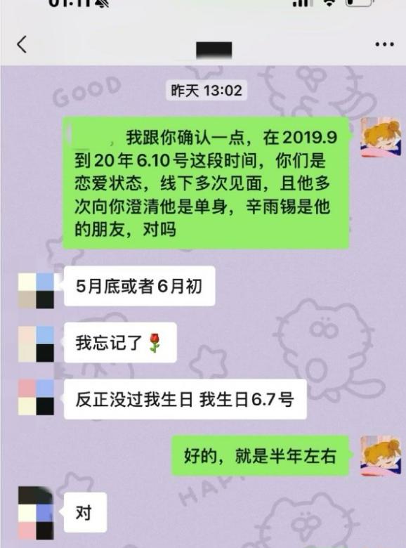 辛雨锡和这第二个女生联系上之后,俩人把时间线一对发现了不对。