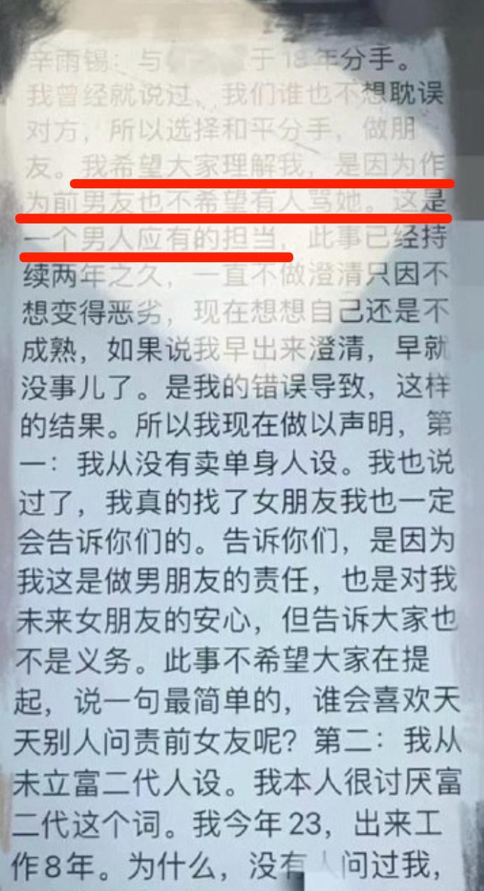 但,秦霄贤为了稳固自己单身身份,愣是写了篇小作文说明自己已经和辛雨锡分手了,只是曾经谈过而已。