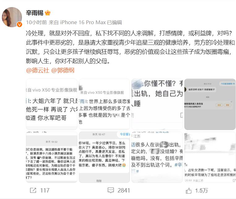 不仅如此啊,秦霄贤拜师之后的微博也是辛雨锡写的;