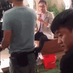 他从剧务做起,搬东西,给观众分发礼品,这些打杂的活儿他都干得很卖力。