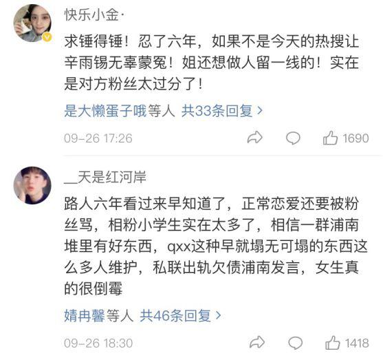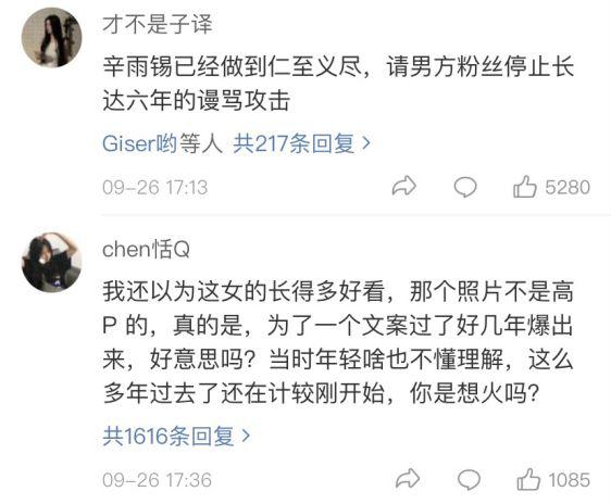两人 2018 年恋爱,2019 年第一次被媒体拍到开始,辛雨锡就一直遭受着秦霄贤粉丝的网络攻击。