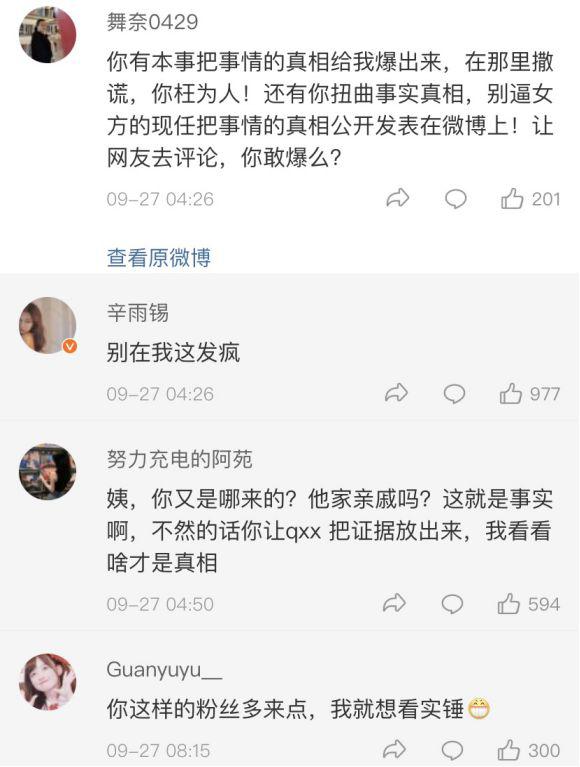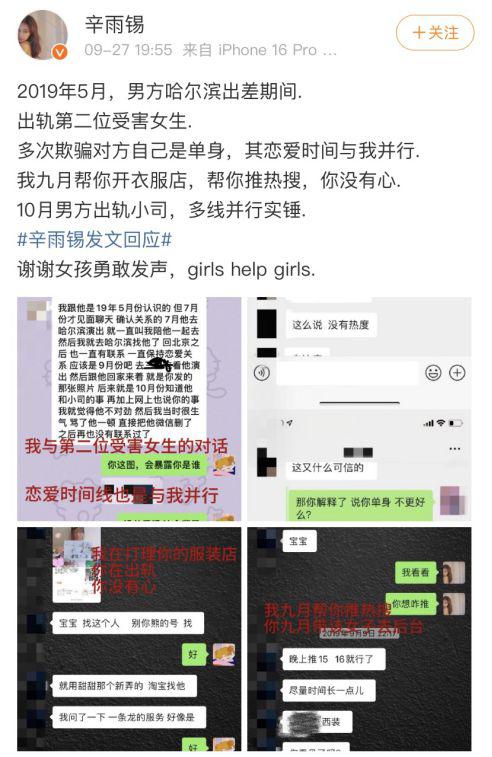 9 月 26 日开始,一个名叫辛雨锡的女演员,突然在网上曝光秦霄贤多次出轨等多个大料。