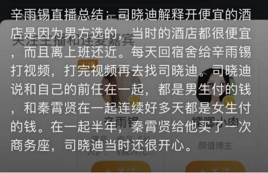 就连开房也是秦霄贤精挑细选,最后选了个 100 多的,让女方来出钱。
