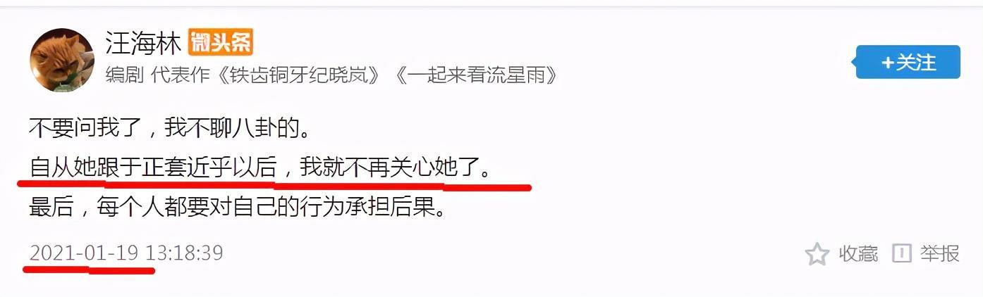 同时,如果你熟悉汪海林的网络日常言论,你会发现,他除了始终力挺自己的老本行编剧,为编剧谋福利发声外,其他大部分时间都在反耽改、反流量化、反饭圈化,这也是笔者为什么从很早就关注他的原因,笔者反对的东西和他是一致的。