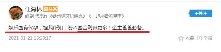 比如,汪海林在张恒第一次爆料后曾发文指出所谓借腹生子现象,不仅在娱乐圈有,在资本界和金融圈更多。