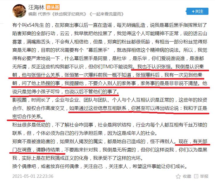汪海林在他的文章最后的观点也是笔者一直坚持的,如果郑爽的事情属实,那怪不得别人,有关部门正在调查,请静待结果。