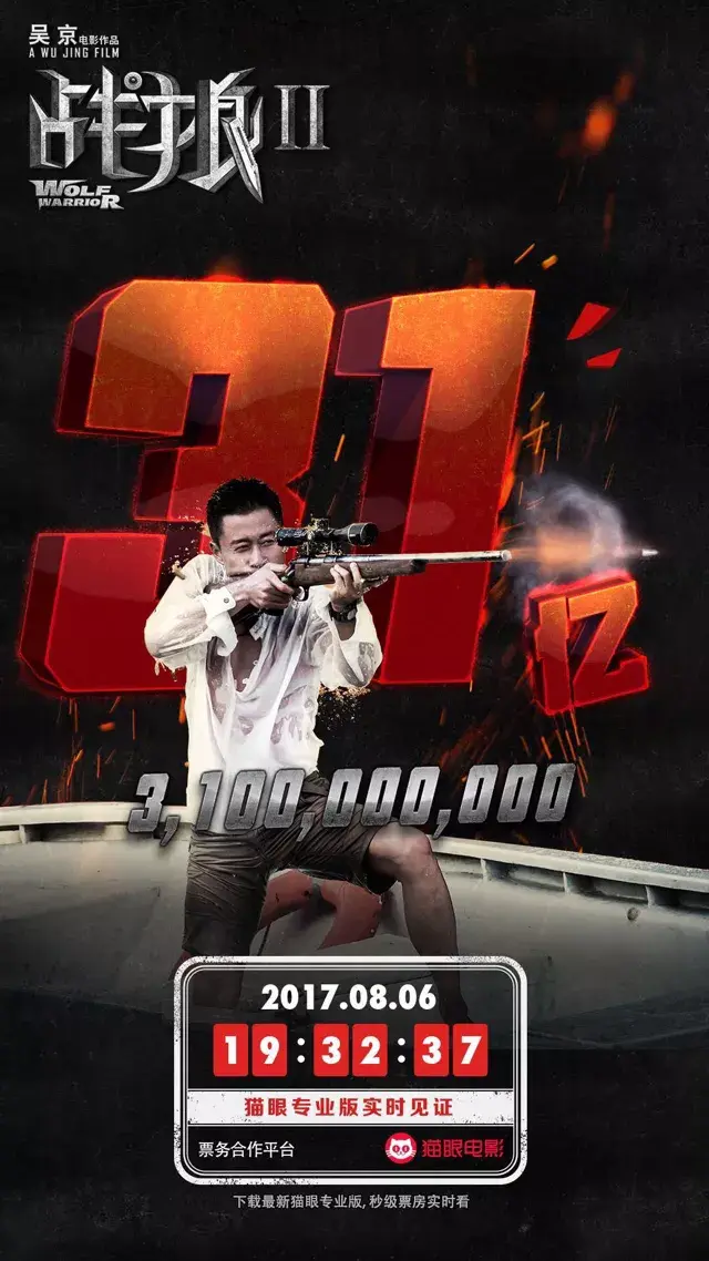 2017年8月8日,《战狼2》已经有100000000人次观影,