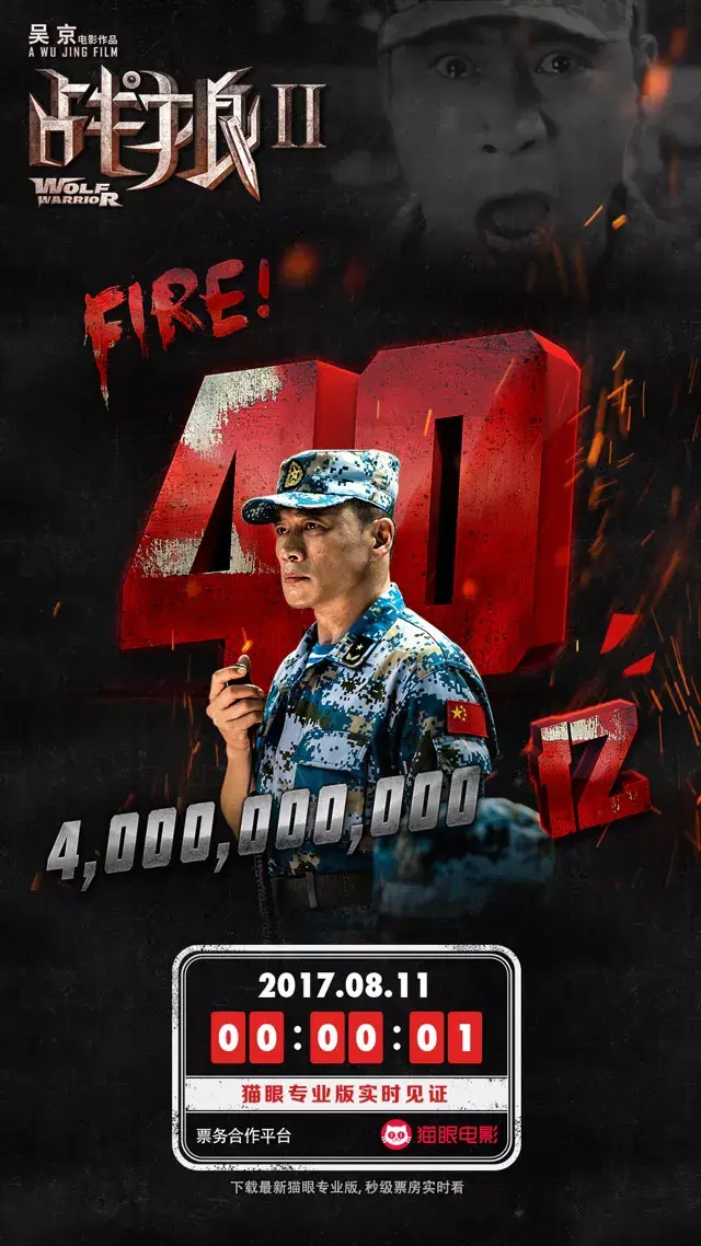 这是一张极具标志性的海报,打破了中国电影票房破亿的最高纪录:四个小时!也就是2017年7月27日晚20点——24点,传奇诞生!