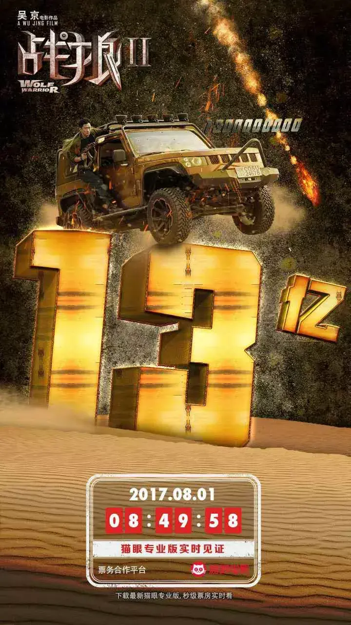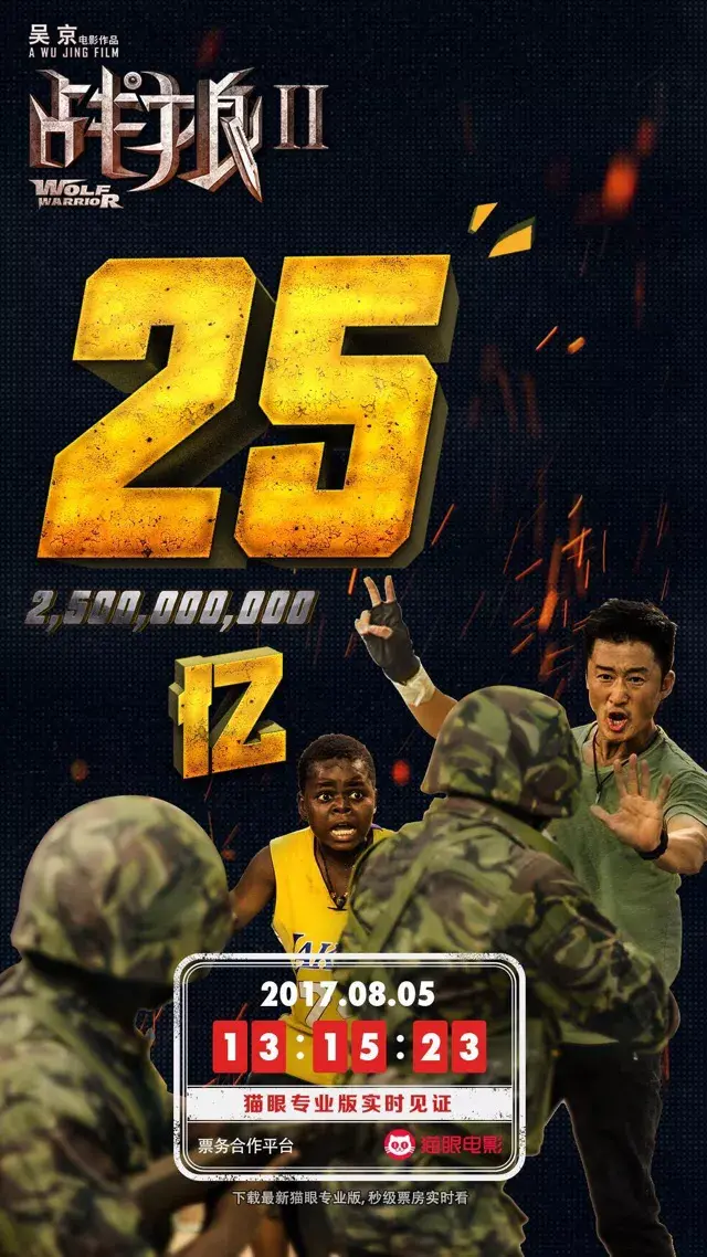至此,2017年8月22日,《战狼2》已经突破140000000人次观影!创造了世界之最!