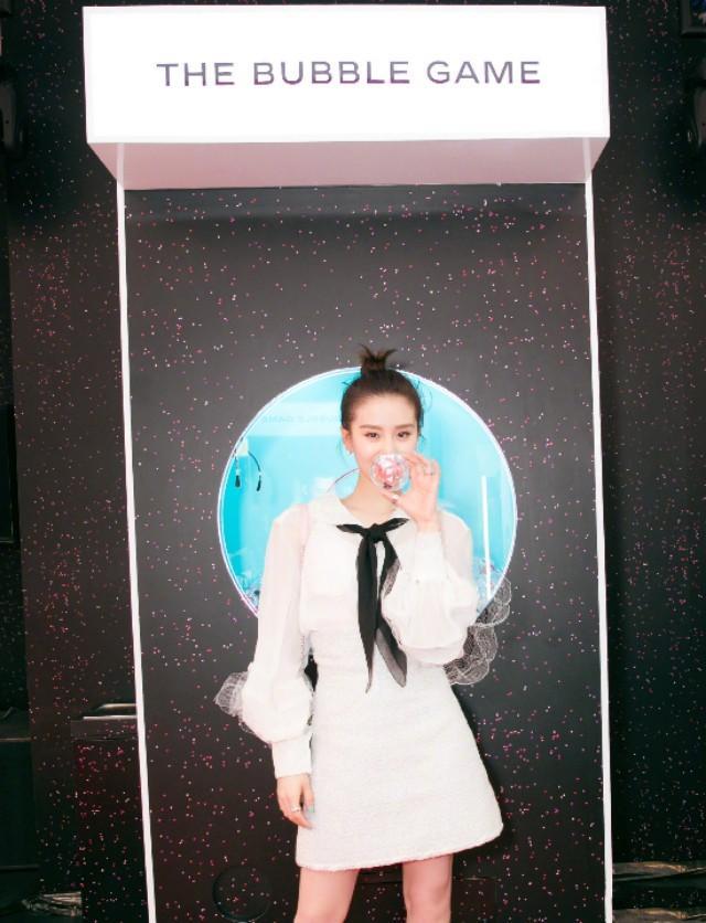扎上丸子头,利落又帅气,白衬衣搭配白短裙,黑色丝巾系成蝴蝶结,更增加一种海军风的效果。属于诗诗特有的温婉与帅气组合起来就是美美的。