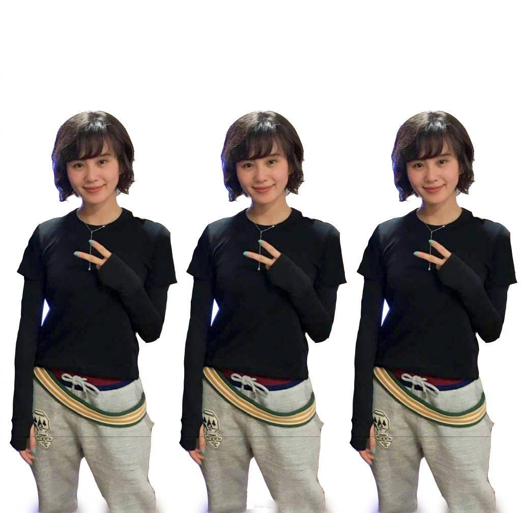 比如这款类似的毛毛卷发型,齐耳短发加上空气刘海和偏分的发型,让刘诗诗的小脸更显小显精致了。穿上简单黑色打底衫外搭同色黑色t恤,搭配阔腿牛仔裤,又帅又甜的小狮子。