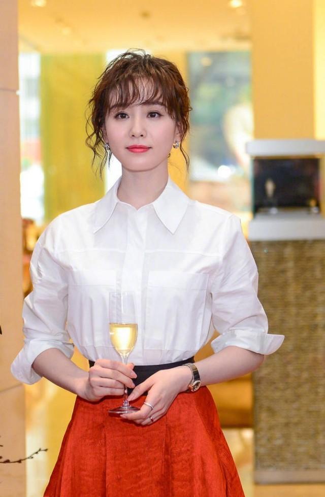 细细的甜美卷发搭配马尾辫,穿上经典白衬衣搭配红色半裙,温婉大气又甜美,特别贤惠的诗诗。
