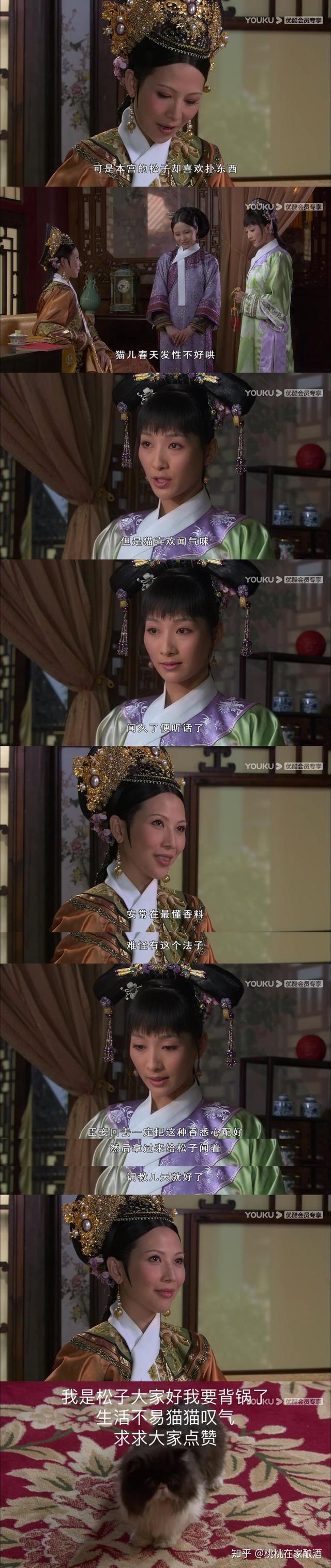 于是在皇后 " 帮助 " 安陵容救出了她的父亲,又一再示好后,安陵容亲手绣好了一个香囊,献给皇后,而皇后却提了香料和猫。