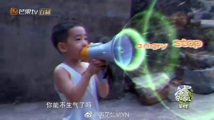 陈小春和Jasper一起做任务时,一直让他走快点。小家伙软乎乎地,在面对爸爸盛怒的表情时,打开手机的喇叭对着爸爸喊:“what's wrong with u?Can u stop angry now?”