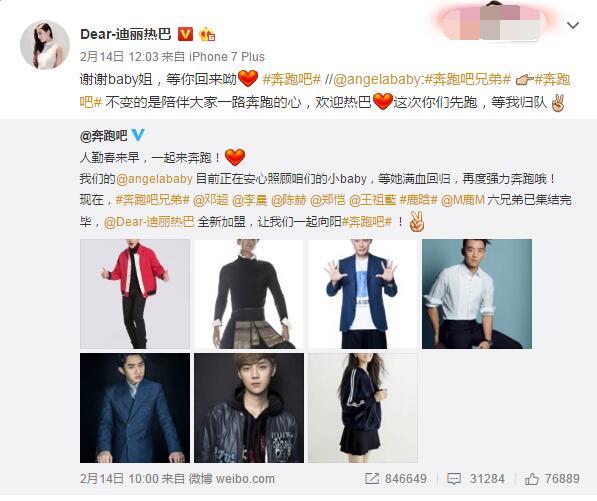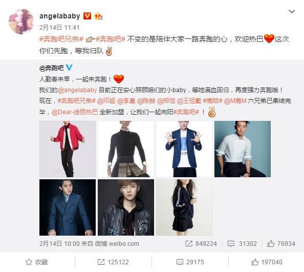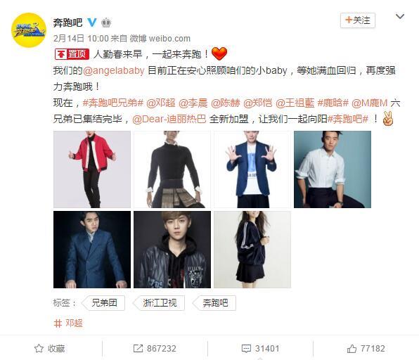 情人节这天,在众位情侣忙着秀恩爱晒幸福的时候,跑男的官网“奔跑吧”在微博上默默地宣布了迪丽热巴正式加入跑男团的好消息。虽然女队员由AB变成了胖迪,但男队员还是保持不变,依然是你们爱的邓超、李晨、陈赫、郑凯、王祖蓝、鹿晗。