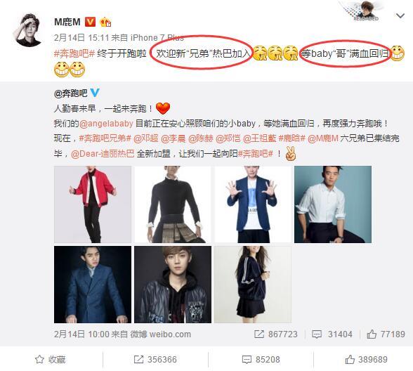 最重要的是,在胖迪正式加入之后,鹿晗发了一条微博,突显了他的高情商,既怀念了老成员,又欢迎了新成员。尤其是在跑男即将开拍和新成员加入都没有发微博表示欢迎的对比下,鹿晗简直是最机智的一个。
