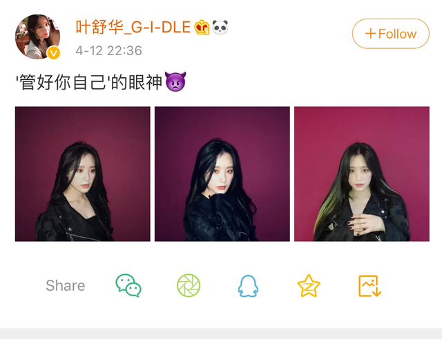 但叶舒华可不是普通爱豆,她立马发了条微博,有3张精修附带一句“管好你自己”。