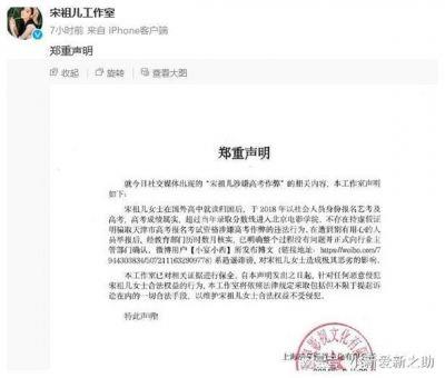 宋祖儿方发声明:经我国税务部门核实,未发现涉及偷逃税行为