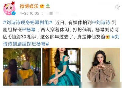 刘诗诗低调探班杨幂,戴渔夫帽穿低调装,重现《仙剑三》美好时光