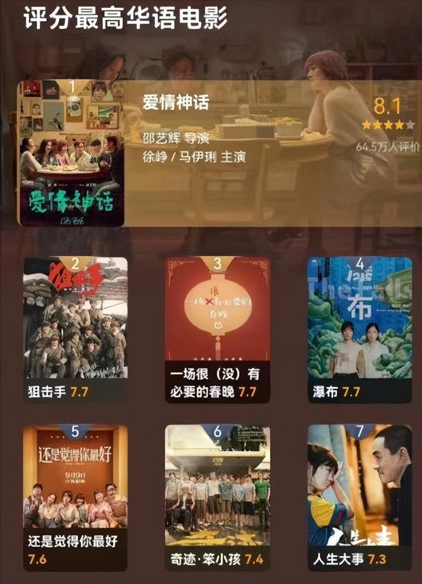 《爱情神话》作为一部全片对白基本为上海话的电影,最大的特点便是极具“上海本土”气质,并且还是一部讲述中年人感情生活的爱情片,再加上徐峥、马伊琍等出色演技的加持,该片最终也拿到了2022年豆瓣华语片最高分。