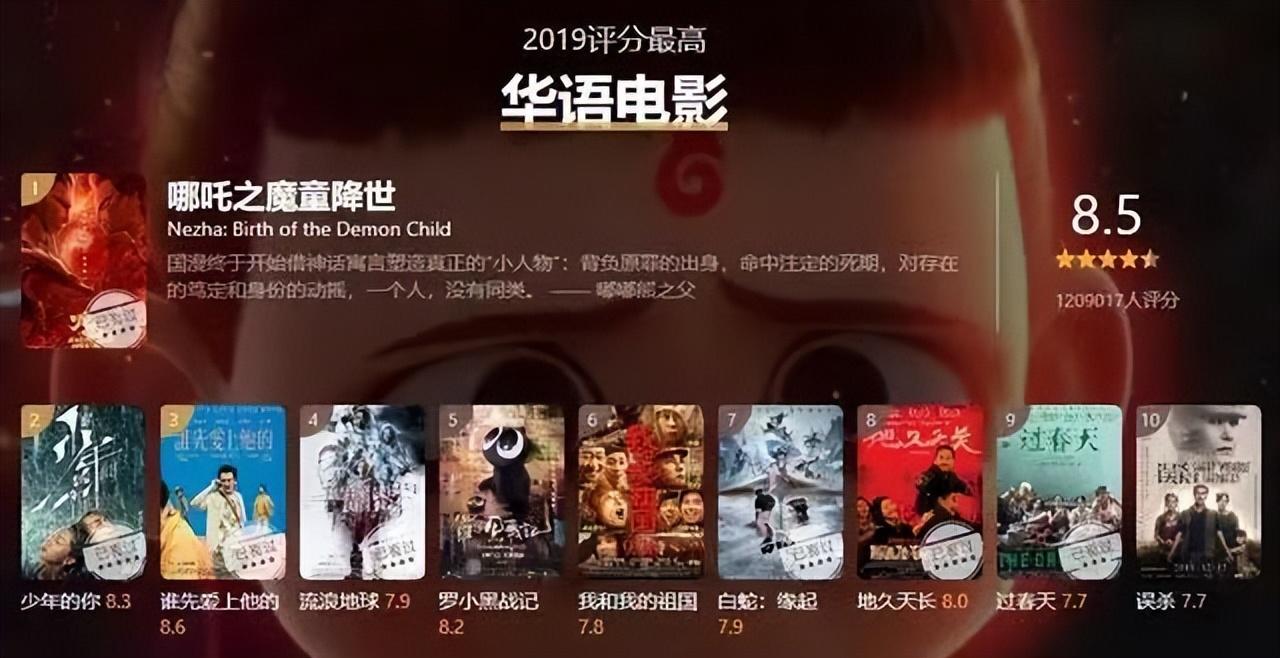 这或许是2019年最无可争议的最佳华语片了,也让观众发现一部动漫可以有如此大的潜力,50.35亿的票房、金鸡奖最佳美术片、百花奖最佳编剧,无论是从口碑还是票房上,《哪吒》都是收获颇丰,也让此前名不见经传的饺子导演一夜成名。