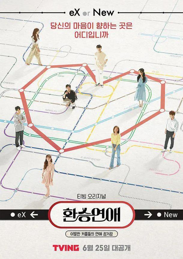 《换乘恋爱》的模式是将四对互为前任的男女嘉宾放在同一屋檐下,在不公布关系的前提打乱重组发展新恋情。