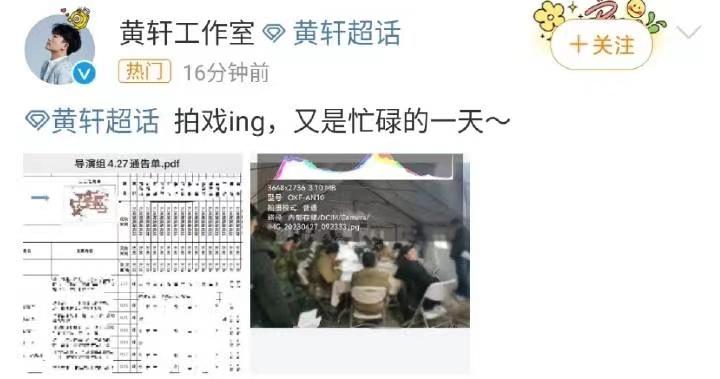 在网上引发热议后,黄轩工作室晒出黄轩在片场的照片,以及4月27日的通告单,上面出现了上甘岭几个字,疑似在澄清黄轩罢演传闻。