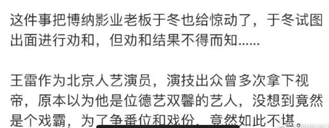 媒体还爆料,王雷除了排挤导演,改其他配角的戏外,还占用了另一个主演黄轩的戏份。