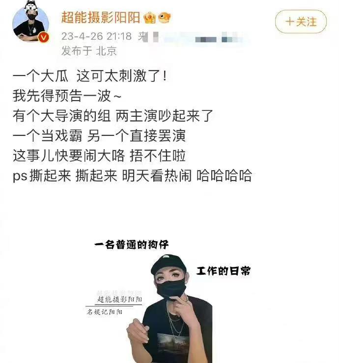 其实,此前就有八卦媒体透露,有一个大导演的组,两个主演吵起来了,一个当戏霸,另一个直接罢演。网友们议论纷纷,猜测这两位主演究竟是谁。