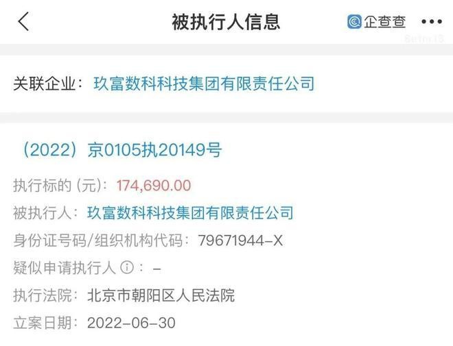 网友爆料中的 " 悟空理财 " 关联公司为玖富数科科技集团有限责任公司,成立于 2006 年,法定代表人为任一帆,注册资本为 2 亿元,曾于 2025 年纳斯达克上市。该集团旗下 36 家分支机构均已注销,但仍控股 9 家企业,间接持股 40 家企业。6 月 30 日,该公司被北京市朝阳区人民法院列为被执行人,执行标的为 17.47 万元,案由系劳动争议。