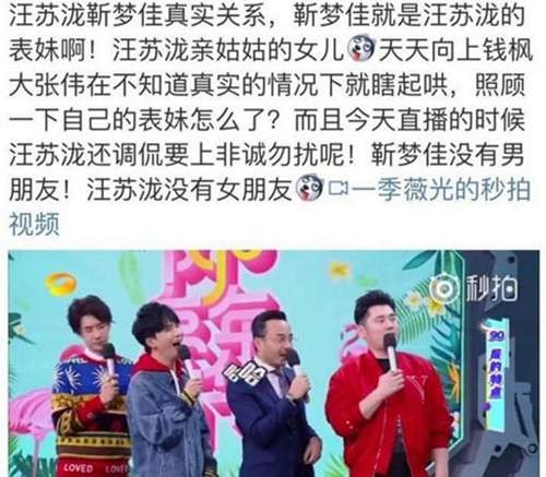 官方甚至发布了疑似曝光恋情的消息,这也是让吃瓜群众们一脸懵逼。不过不少网友指出这应该是节目的捆绑炒CP,之前汪苏泷参加《火星研究院》的时候,就被节目组炒过与王校长前女友张予曦的CP,要知道张予曦的现男友其实是台湾演员陈柏融,所以这一对CP确实有点假。所以说靳梦佳和汪苏泷更加引起了粉丝们的怀疑。