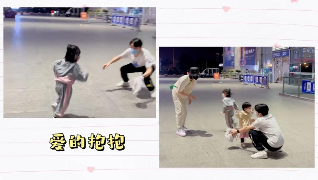 最温馨的,那肯定是两个女儿奔向王祖蓝怀里的一幕。大女儿看见爸爸伸出手蹲在前面,跑着扑进了爸爸的怀里。等把大女儿放下过后,小女儿也跌跌撞撞地奔向爸爸。王祖蓝一把抱起小女儿,一家子在一起的氛围,温馨又幸福。