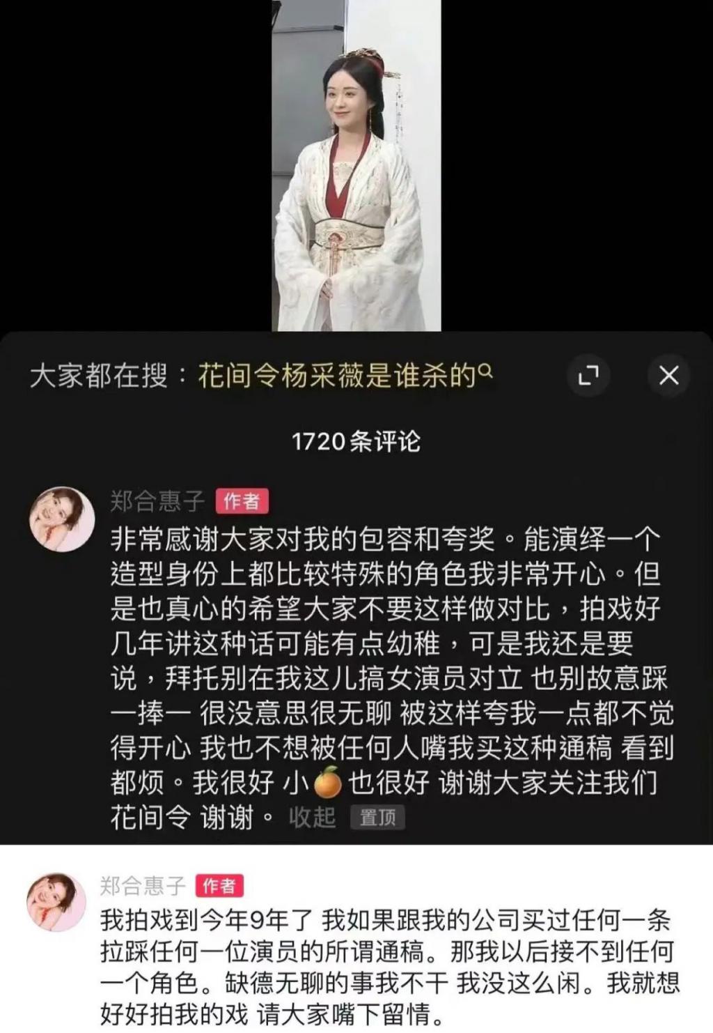 《花间令》播出后,面对网友的对比,郑合惠子率先滑跪⬇️