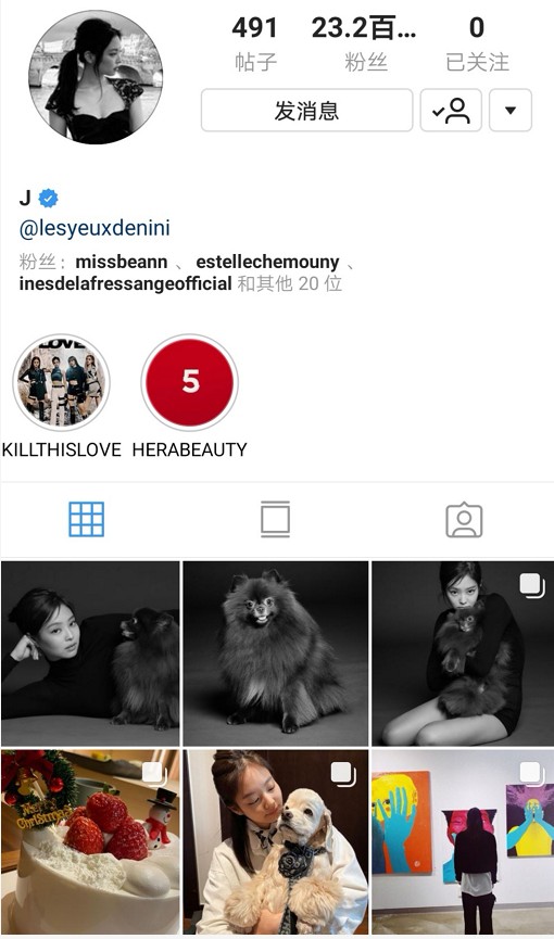 同为Blackpink的成员,Jennie的ins粉丝数同样高达2000万+,由此可窥见Blackpink在韩国的火爆程度。