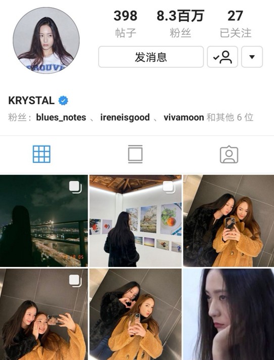郑秀晶和郑秀妍是亲姐妹,粉丝数比姐姐西卡少一点。