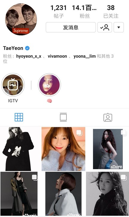 少女时代的队长太妍,也曾位居ins中韩国女星人气NO.1,后被Blackpink的成员超越。如今拥有1400万粉丝的泰妍依然不可小觑。