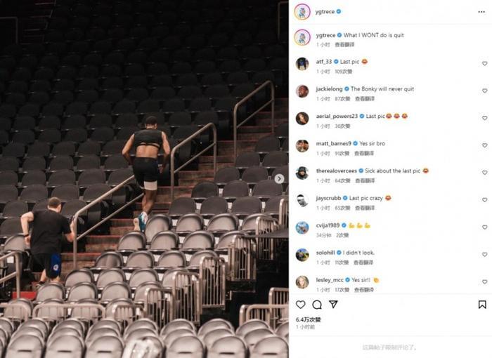 他晒出了自己在球场上的训练照,并且写道:“我不会做的事情是停下脚步。”