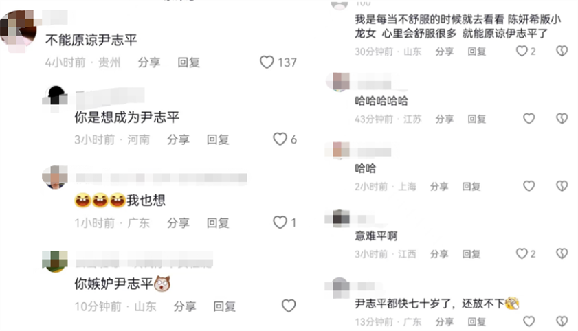 网友看到这段视频之后不淡定了,都这个年纪了依然还是这么漂亮,真的是不能原谅尹志平!下面的评论更好笑,你那是不能原谅吗,那分明是嫉妒,你是直接想成为尹志平吧!