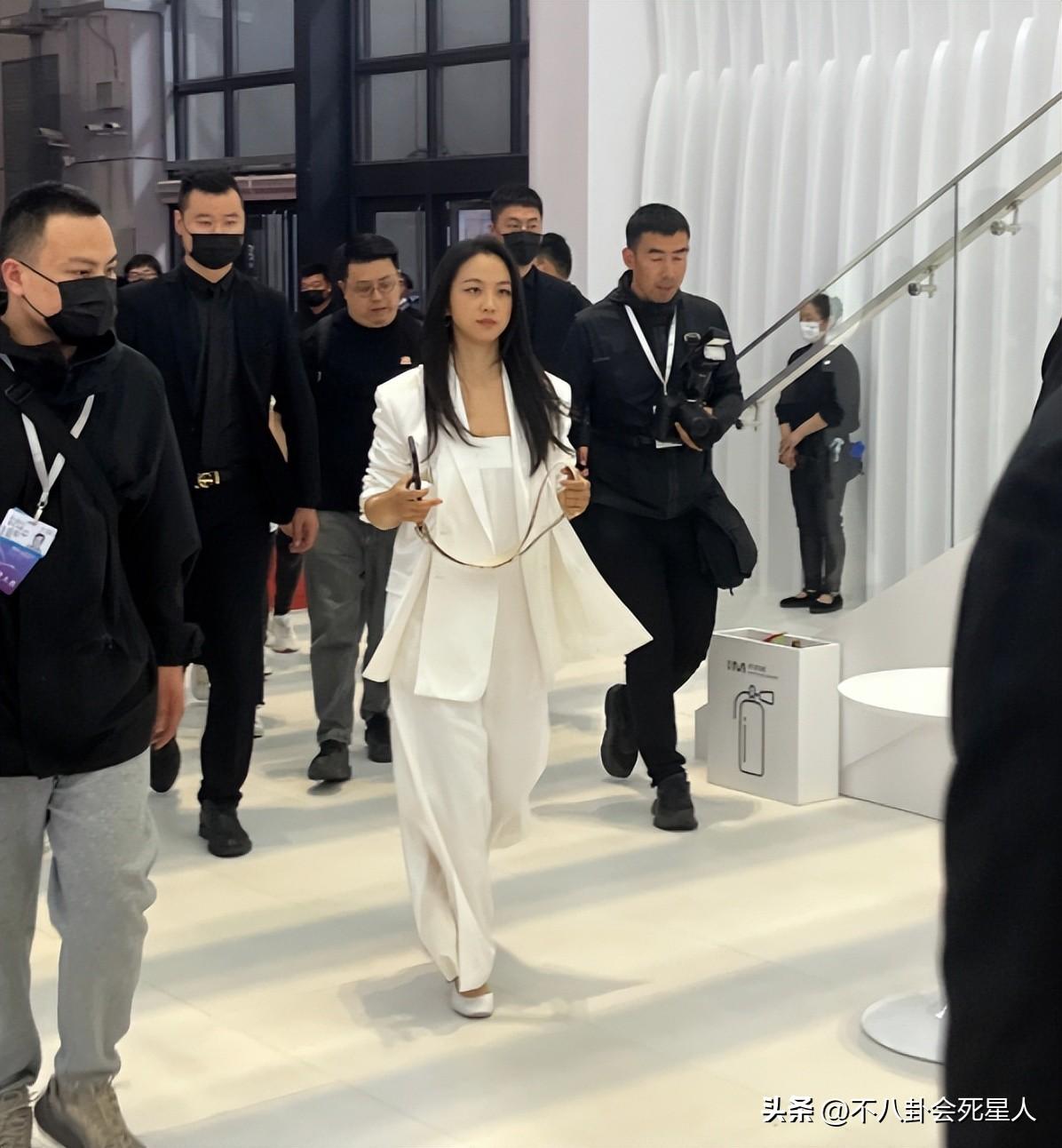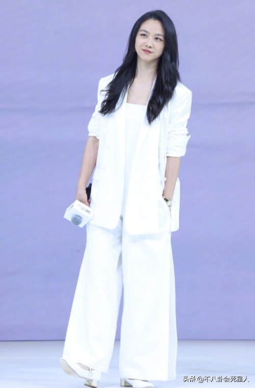 在今天,汤唯出现在上海某车展的活动现场,一身白西装+白色高跟鞋,再加上大高个儿,气场全开,身上有一种特别干练的气场。