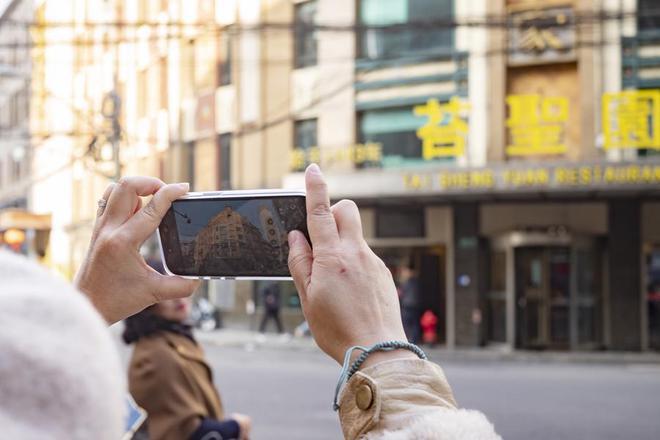 每个人都拿着手机打卡拍照。