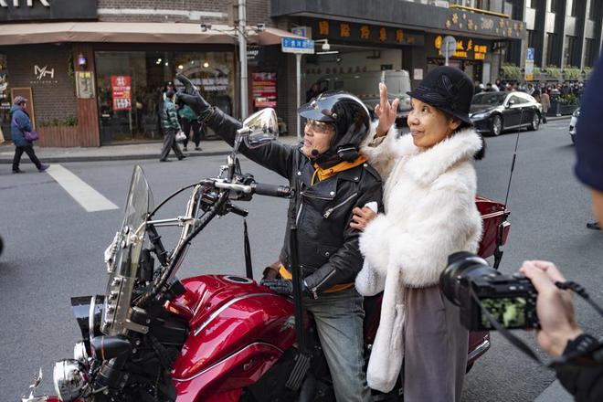 骑摩托车的老爷叔也来凑热闹。