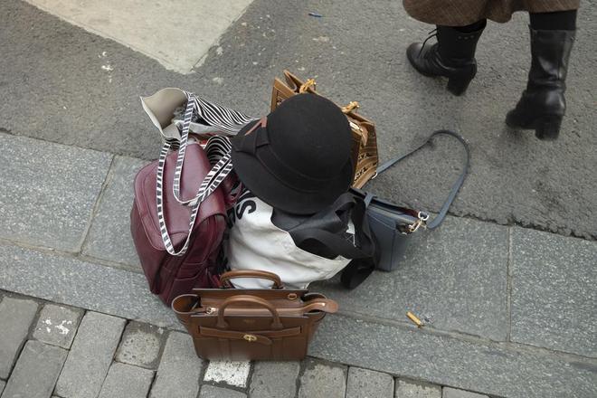 阿姨们为了拍出好看的照片把随身携带的物品都放在了地上。